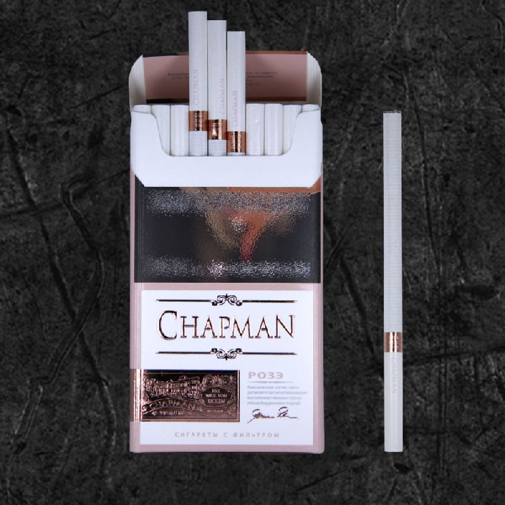 • Стильная упаковка: дизайн пачки сигарет Chapman выполнен в элегантной и минималистичной манере, идеально дополняющей образ современного человека.